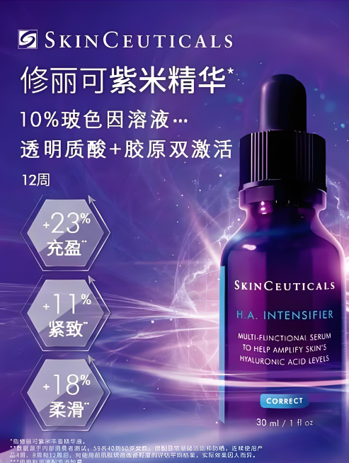 10% 玻色因 + 紫米多糖 + 透明质酸复合配方,主打充盈淡纹。水感精华、好吸收不黏腻,改善凹陷与干纹,使肌肤更饱满嘭弹。成分直白有效,偏油皮亦可安心使用,专业线抗皱口碑之选。